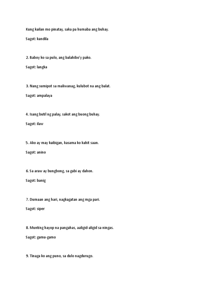 Mga Sagot Sa Ating Bugtong Pdf
